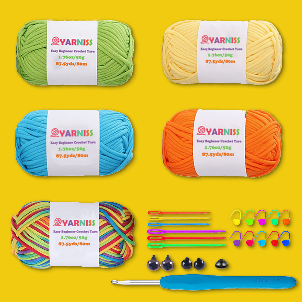Yarniss Beginner Crochet Yarn – 5-Color Pack with Hook & Tools
