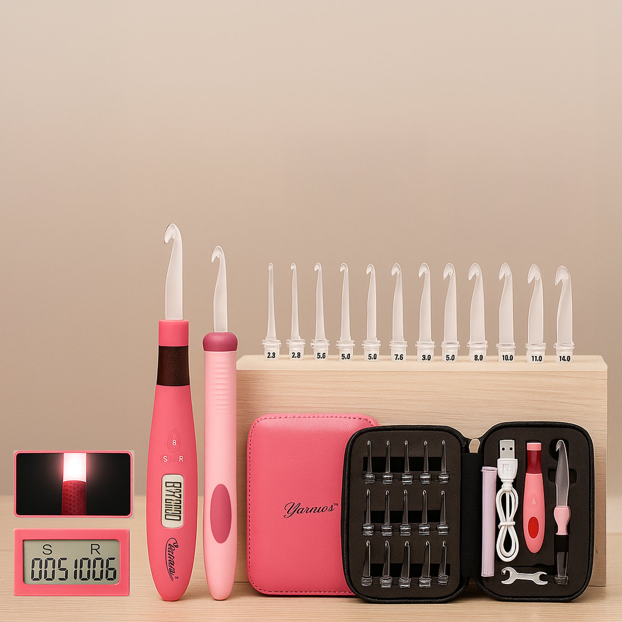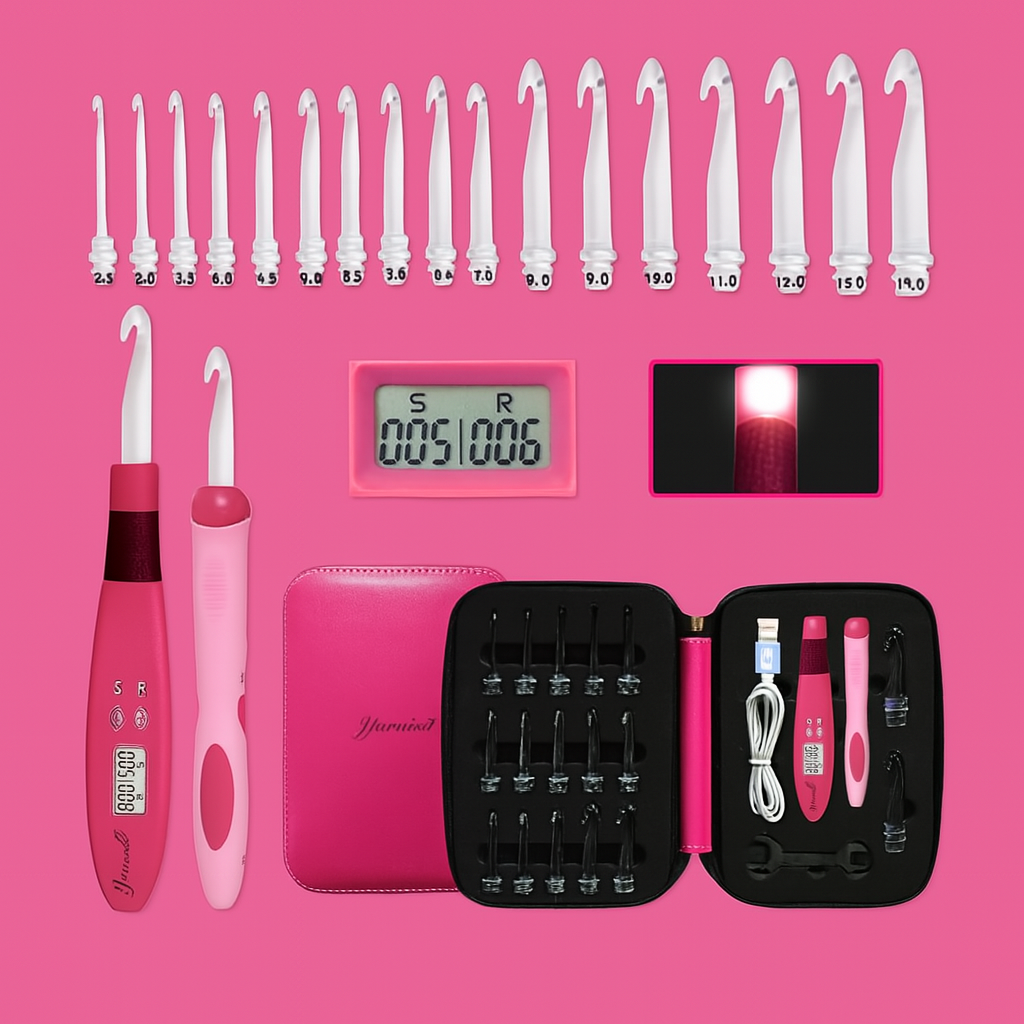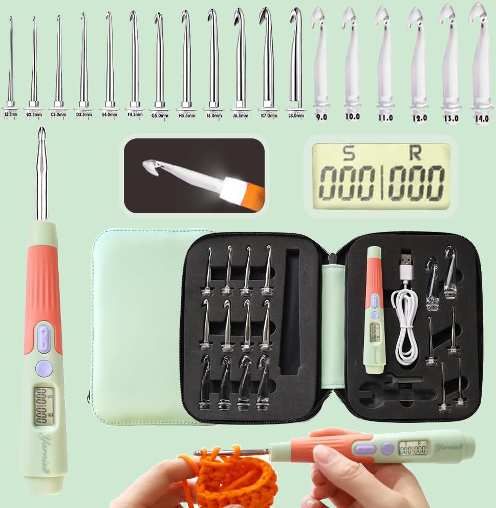 Yarniss Counting Crochet Hooks – 18 LED Sizes (2–14 mm) w/ Counter