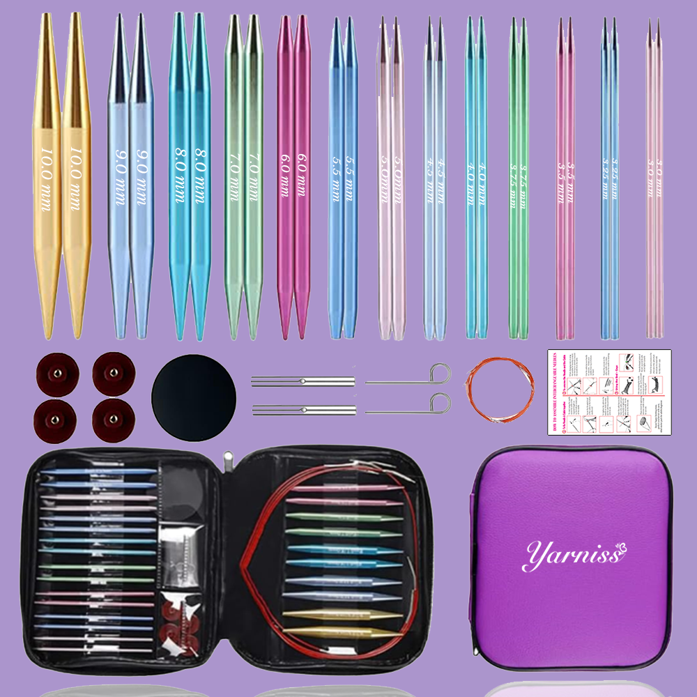 Yarniss 13 Pair Circular Knitting Needle Set 3.0~10.0mm, Interchangeable Aluminum Knitting Needles with Case