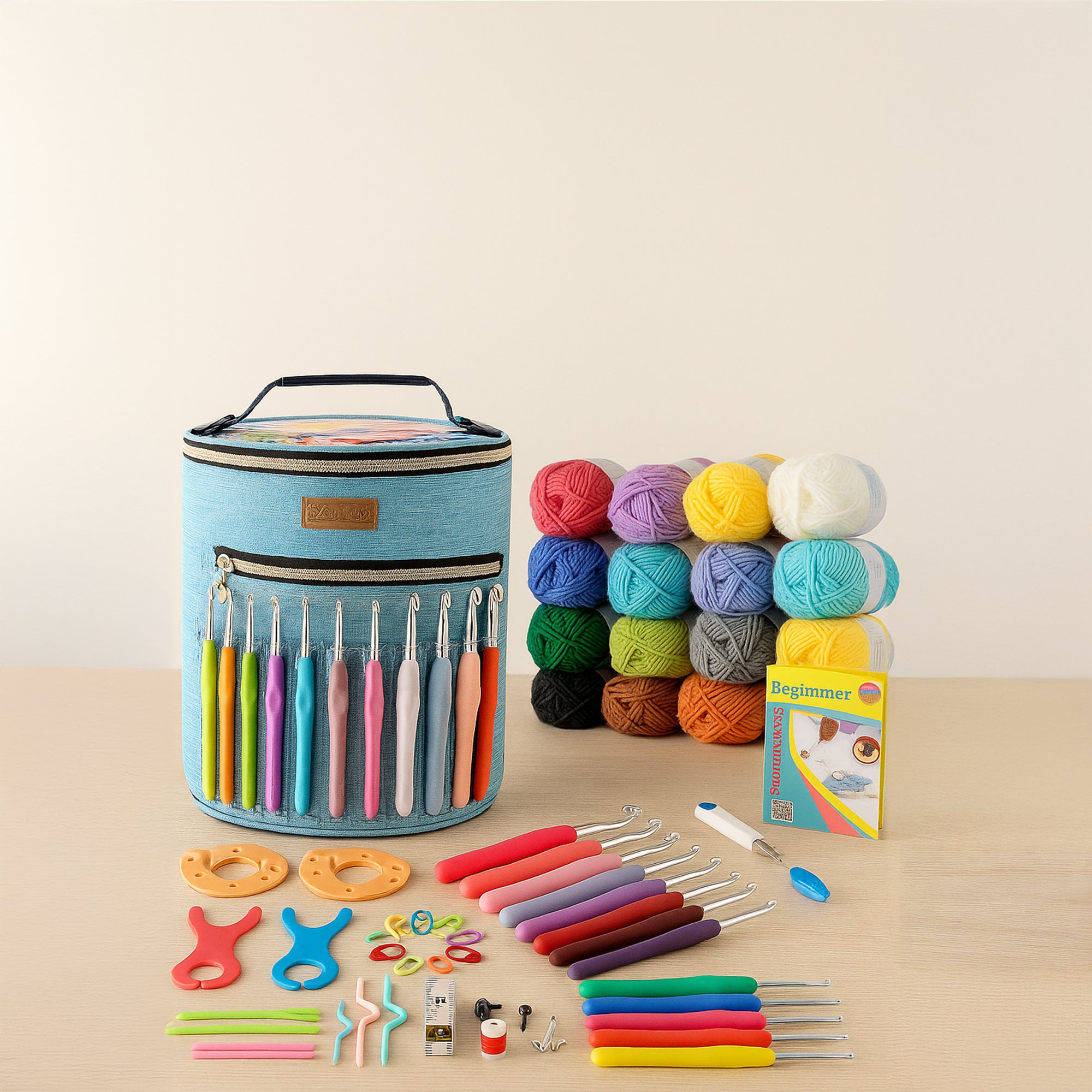 All-In-One Starter Kit:The beginner kit has all crochet essentials:11 colored yarns, ample stuffing,2 sewing needle,4 doll eyes,3 stitch markers, 2.5mm ergonomic...