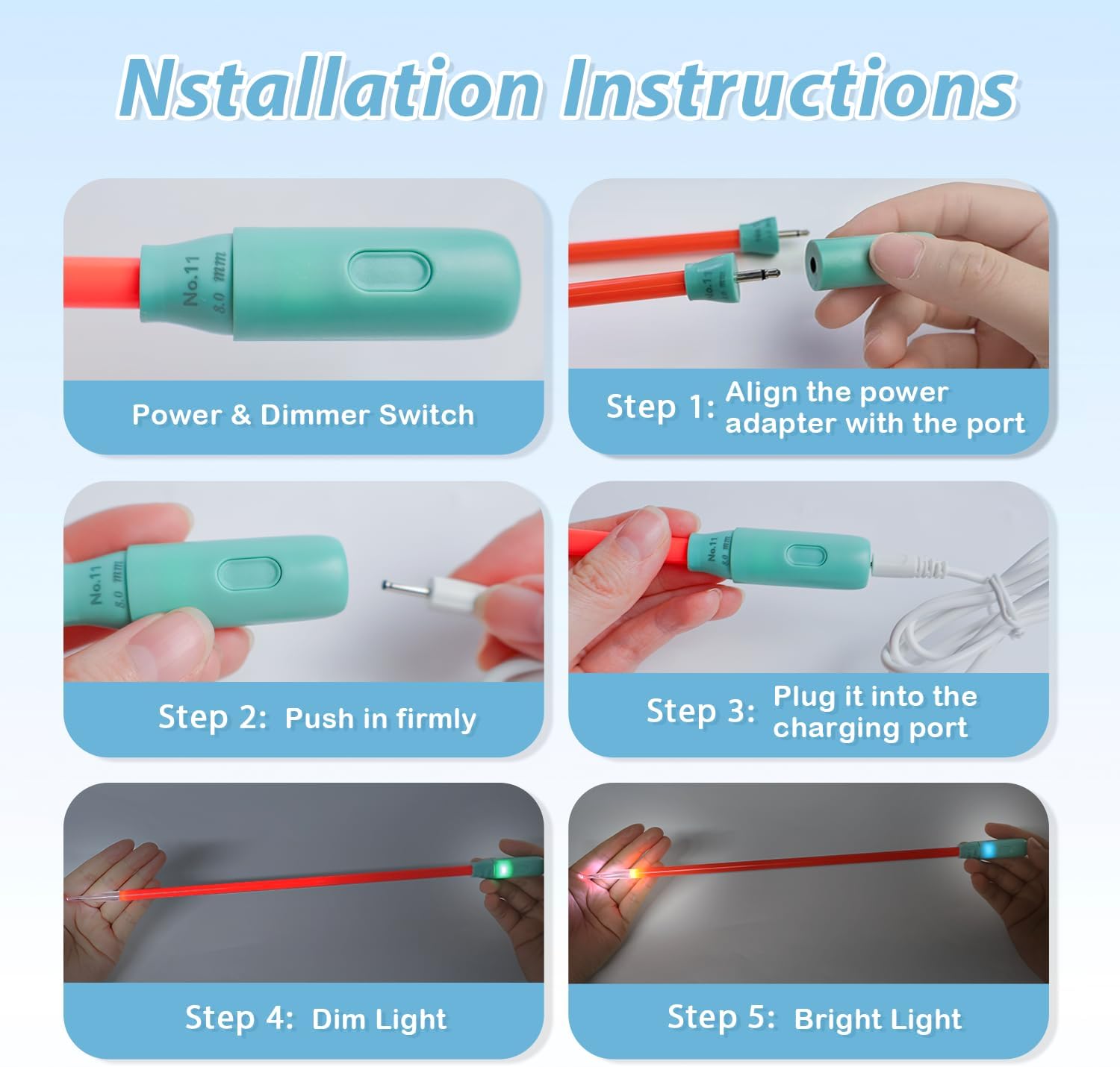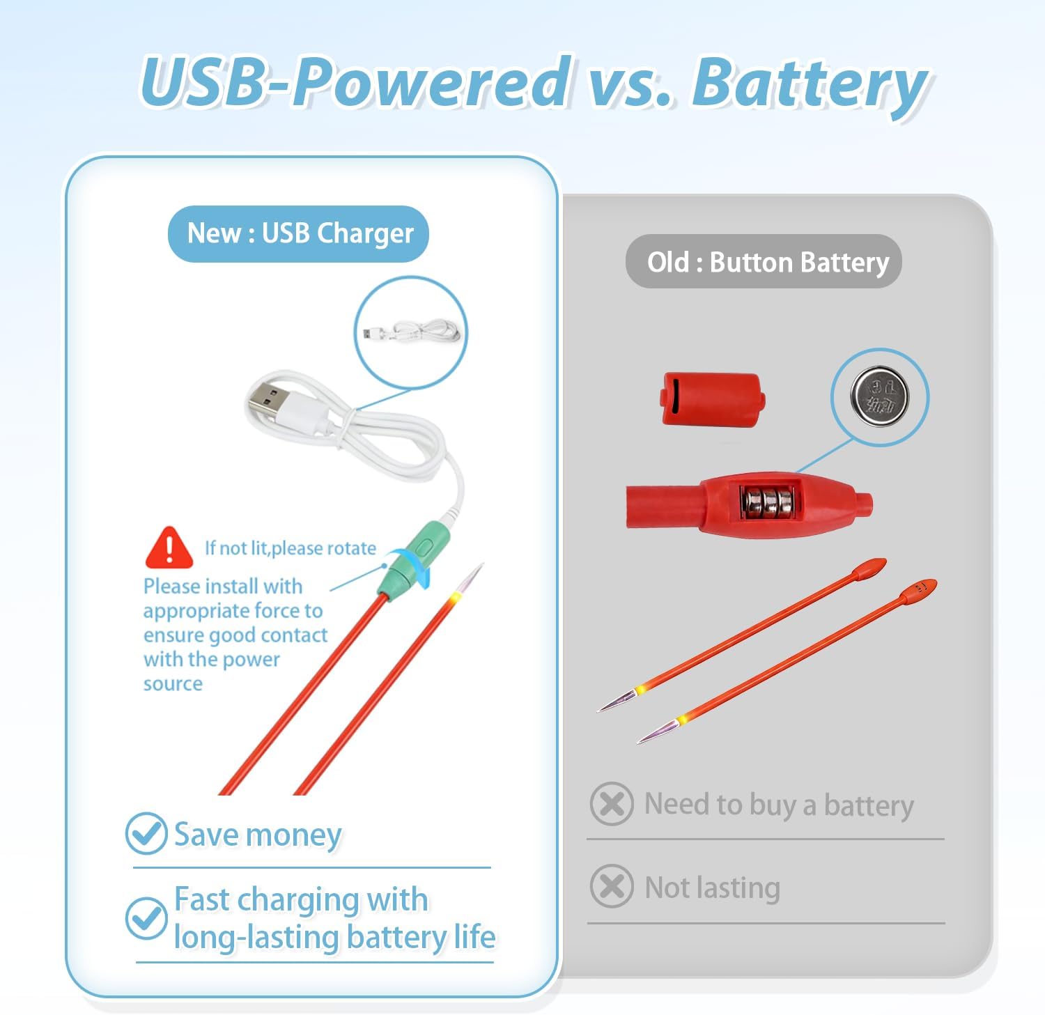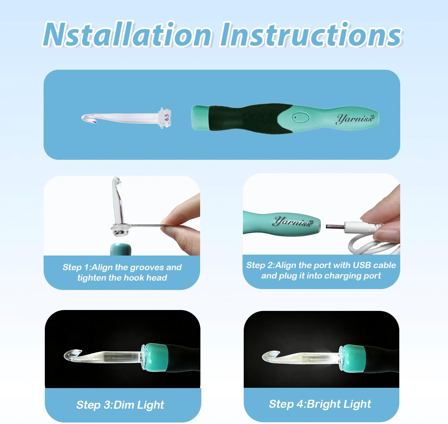 - USB Charging: Conveniently charge via USB. The set also includes 2 additional replaceable lighted power heads, ensuring you can immediately swap out a depleted power head for uninterrupted crocheting or knitting.