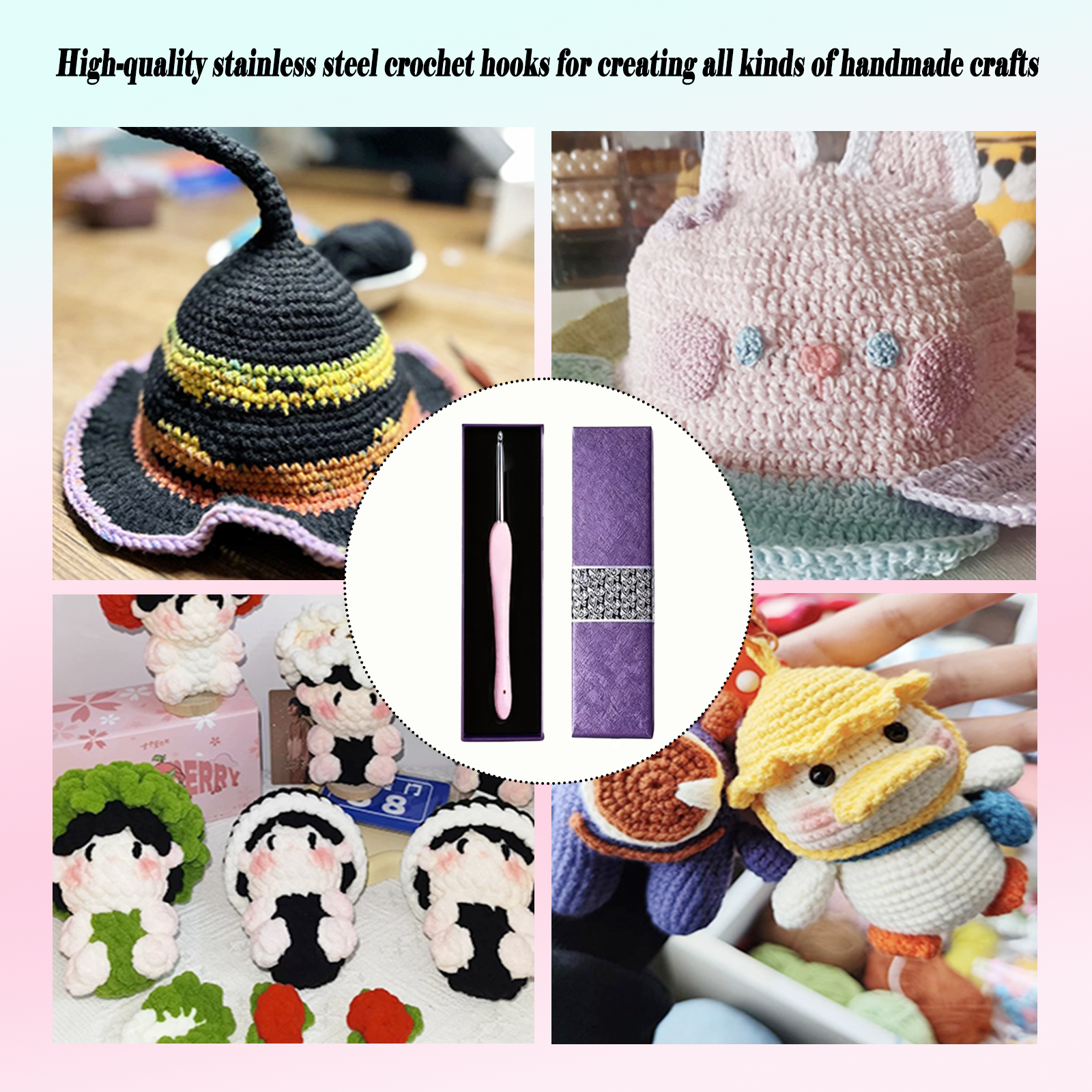 - Lightweigt Rubber Handle: Featuring a soft pink handle with ergonomic design. The wider, thicker handle provides a comfortable grip, making crocheting more effortless.