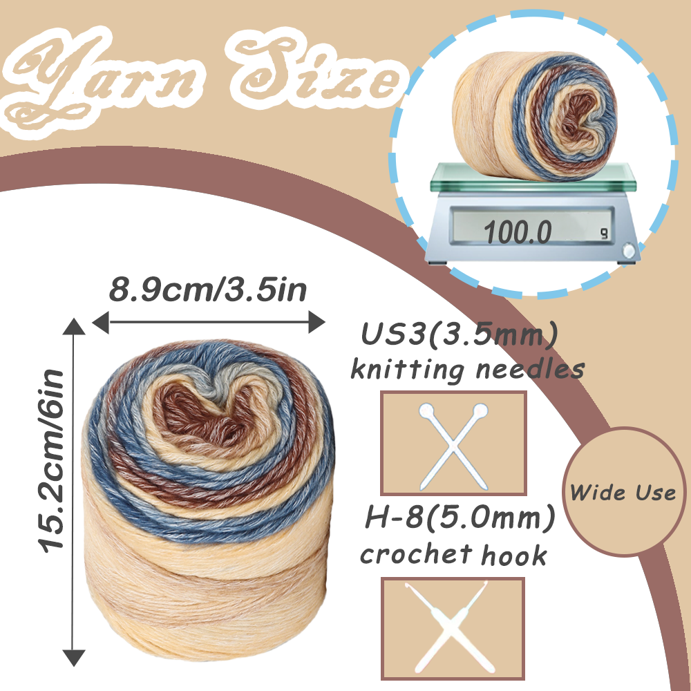 - Vibrant Ombre Transitions: Each cake of yarn offers substantial length for your creations. Weighing 100g (3.53 oz) and measuring 200 meters (218 yards), this cake yarn for crocheting and knitting provides stunning, seamless color transitions that add depth to your crafts.