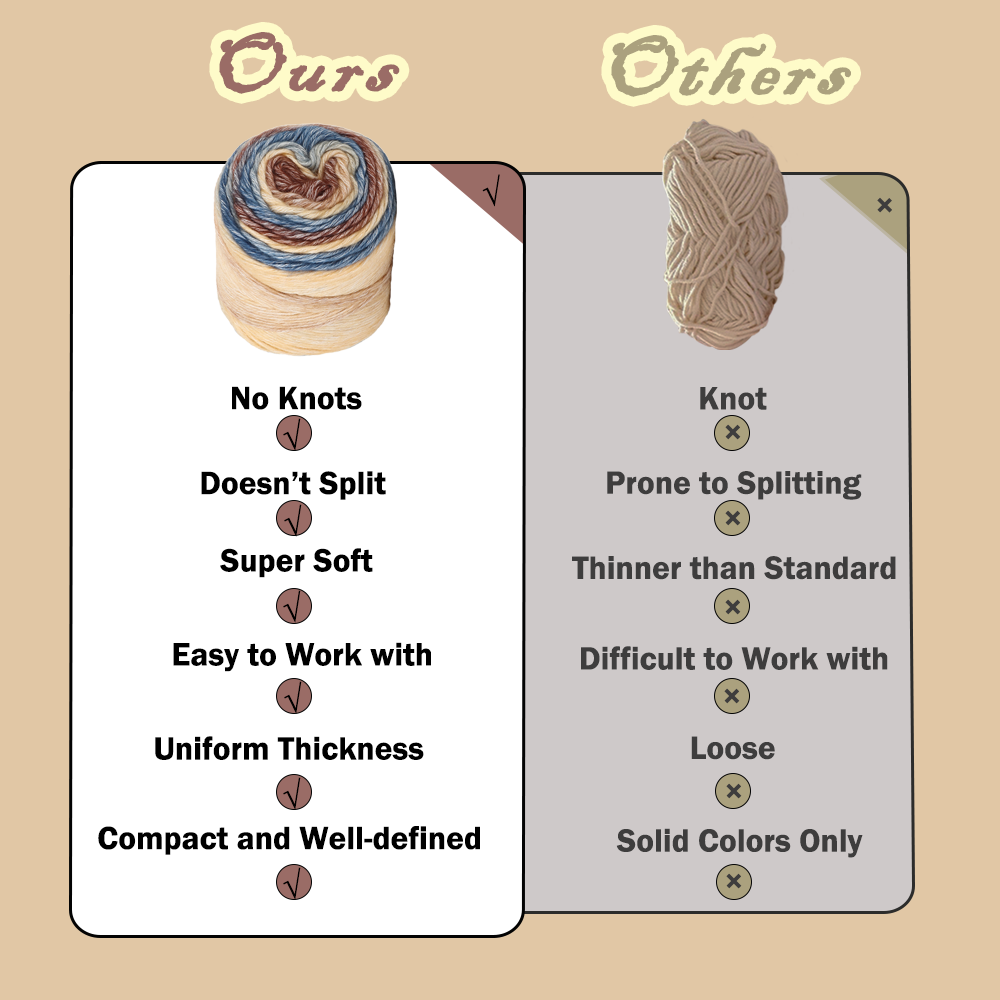 - Durable & High-Twist Gradient Yarn: Yarniss high-quality ombre cake yarn features a generous twist that significantly reduces splitting and fraying. This durable construction makes it strong, pilling-resistant, and ideal for long-lasting items like sweaters, scarves, and blankets.Craft projects is easy to care for, simply hand wash and dry all crafted items.
