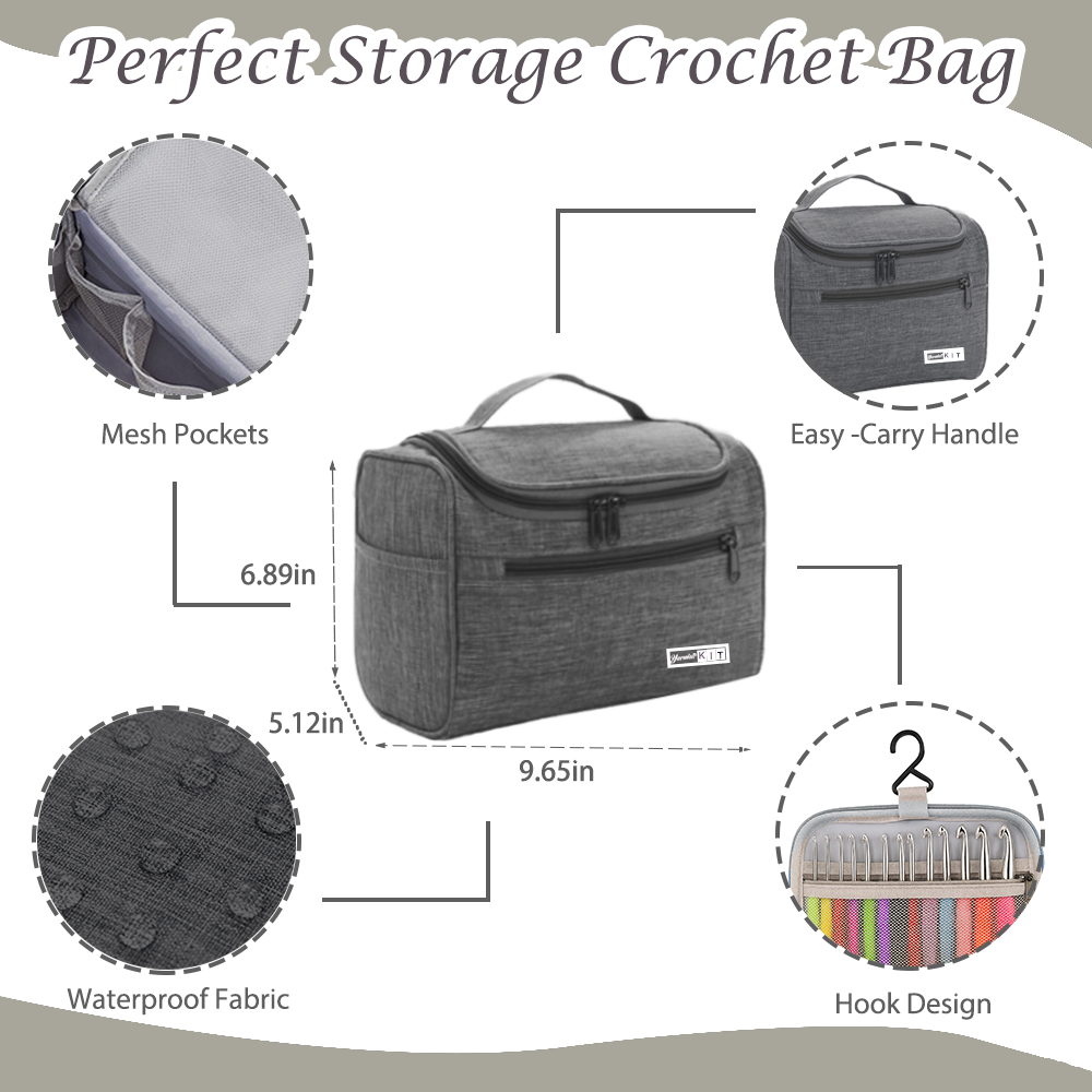 - Multi-Pocket Storage Bag: The gray denim bag with multiple pockets keeps all crochet kit accessories organized. Prevents loss and maintains a tidy crafting space, convenient for storage and transport.