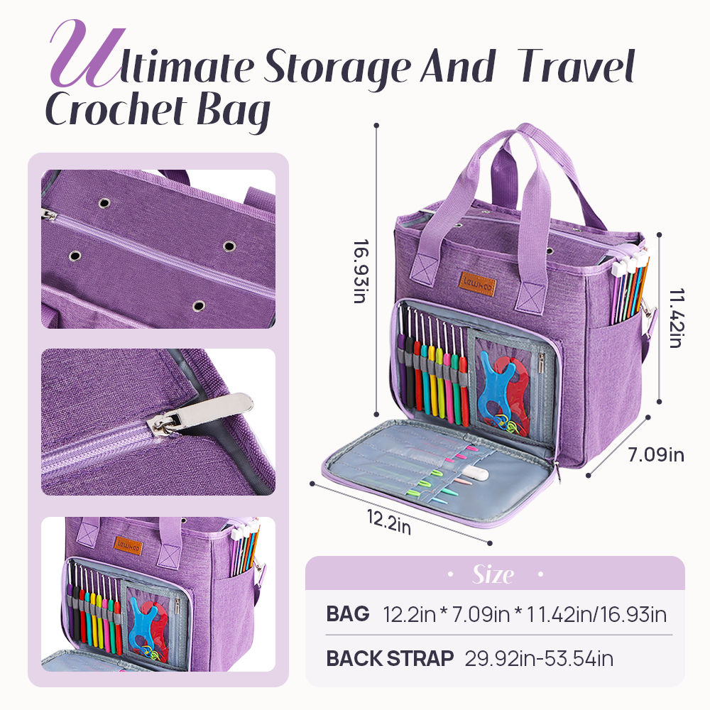 - 【Portable Yarn Storage Organizer】:Durable, large capacity, multi-compartment design and two ways to carry the woven organizer tote bag brings great convenience to users' storage and travel. The 4 slits at the top of the bag can be threaded through the yarn for use.
