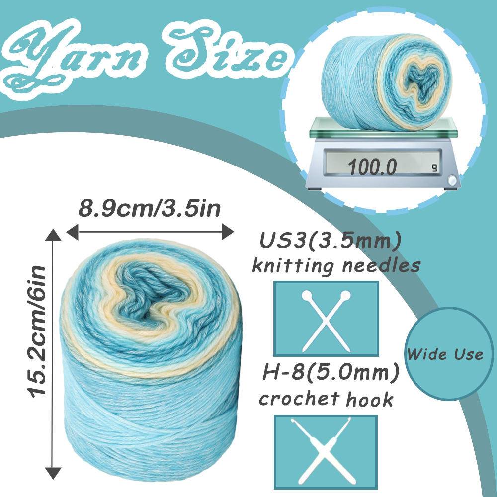 - Vibrant Ombre Transitions: Each cake of yarn offers substantial length for your creations. Weighing 100g (3.53 oz) and measuring 200 meters (218 yards), this cake yarn for crocheting and knitting provides stunning, seamless color transitions that add depth to your crafts.