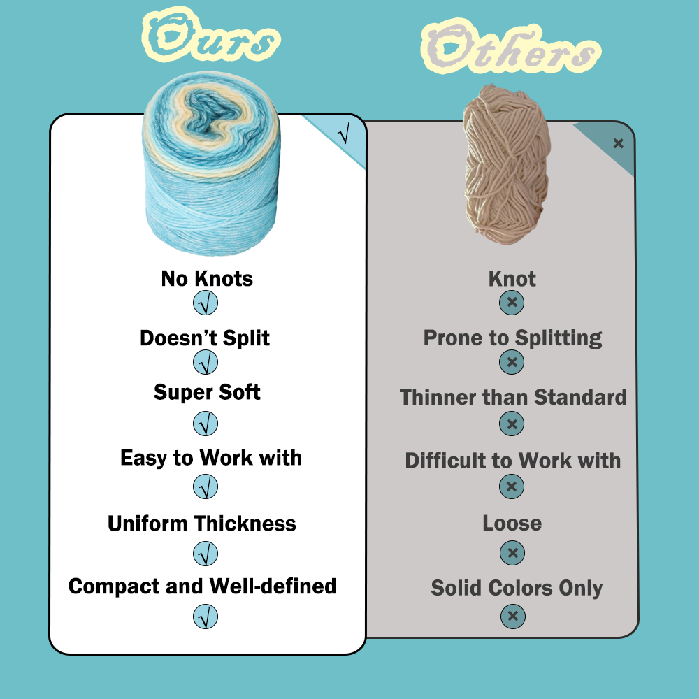- Durable & High-Twist Gradient Yarn: Yarniss high-quality ombre cake yarn features a generous twist that significantly reduces splitting and fraying. This durable construction makes it strong, pilling-resistant, and ideal for long-lasting items like sweaters, scarves, and blankets.Craft projects is easy to care for, simply hand wash and dry all crafted items.