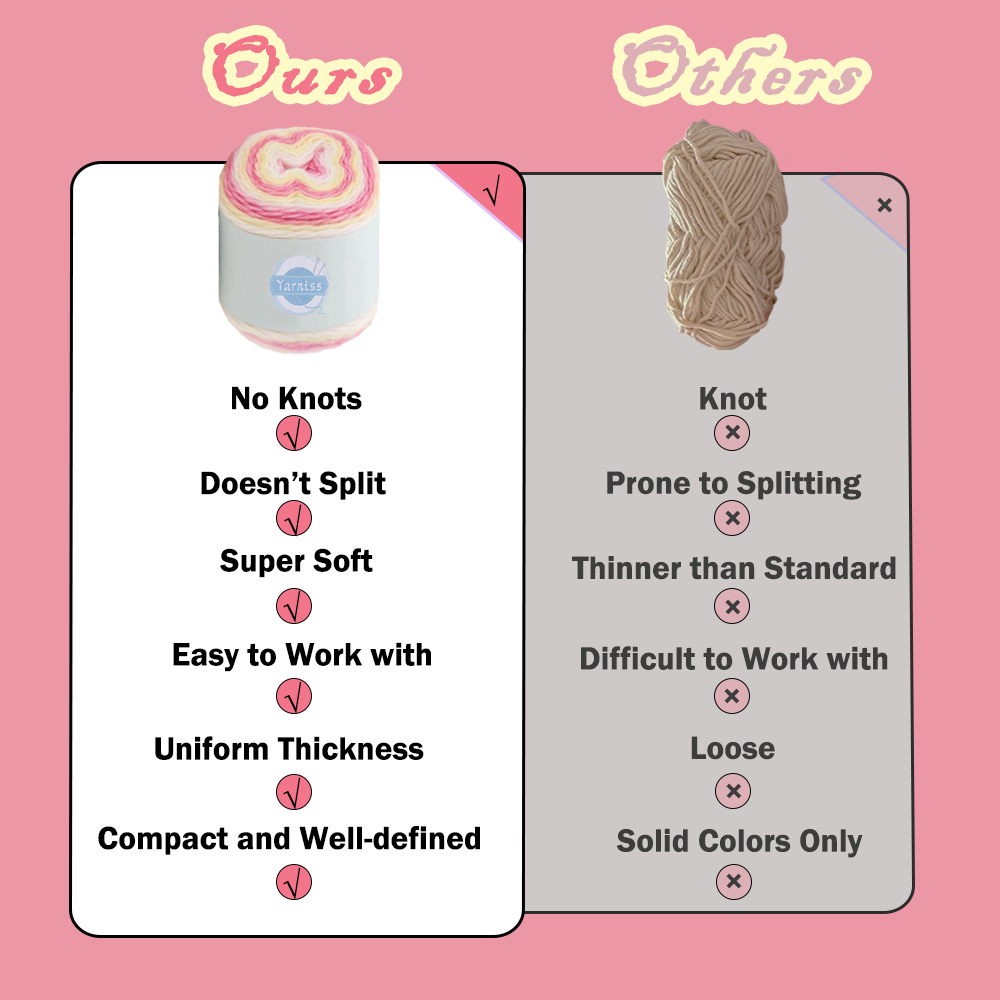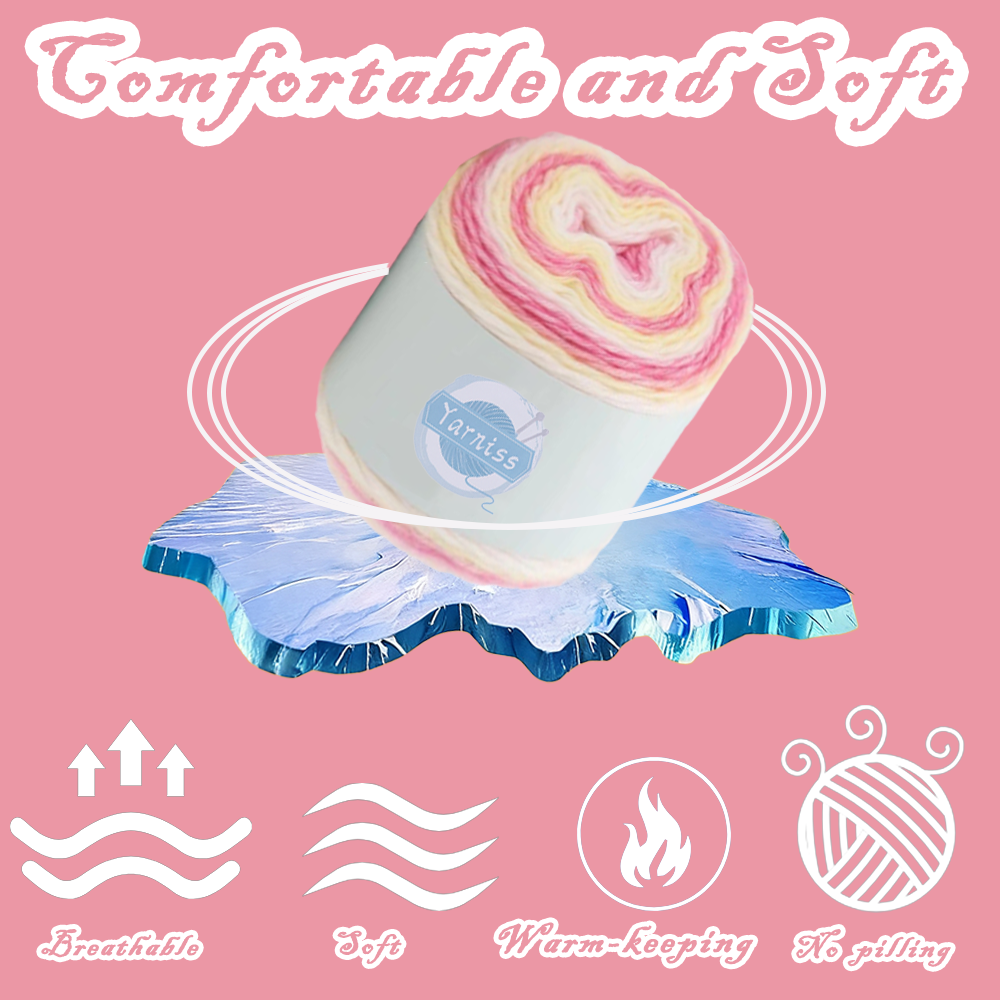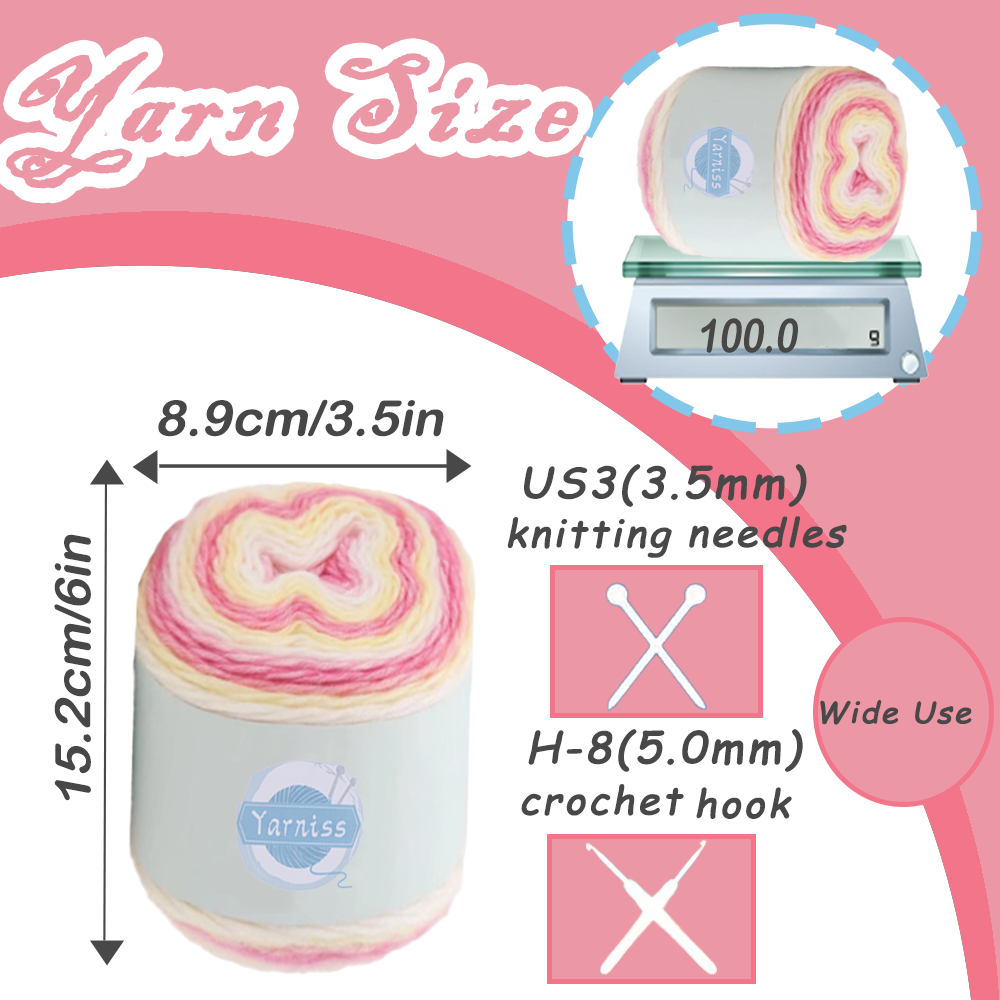 - Durable & High-Twist Gradient Yarn: Yarniss high-quality ombre cake yarn features a generous twist that significantly reduces splitting and fraying. This durable construction makes it strong, pilling-resistant, and ideal for long-lasting items like sweaters, scarves, and blankets.Craft projects is easy to care for, simply hand wash and dry all crafted items.