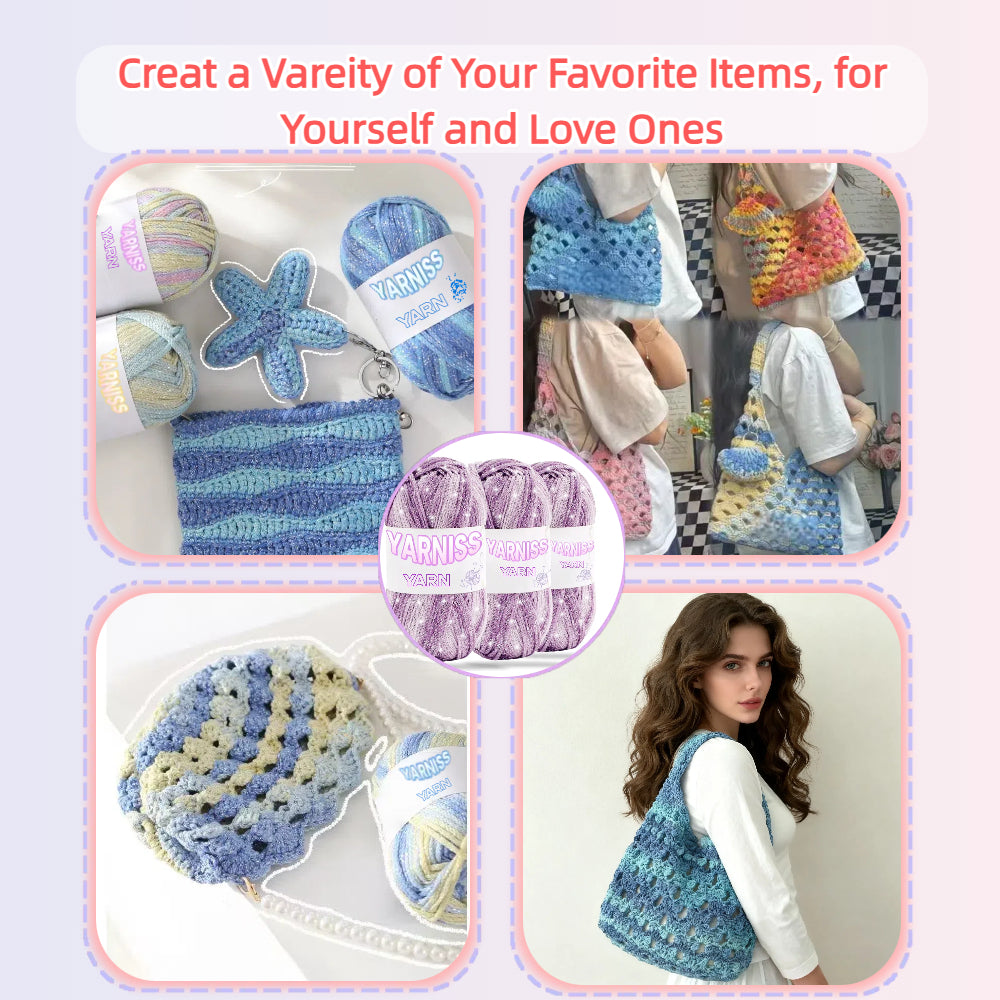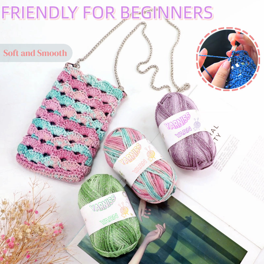 - 5.Versatile For Numerous Creations: Yarniss versatile sparkle yarn is an excellent choice for crafting beautiful bag, unique accessories, and home decor items. Its subtle shimmer adds a touch of elegance to any handmade project, perfect for personal use or as a heartfelt gift.